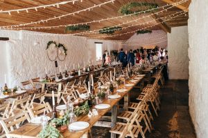 The main player and the largest of the spaces at Dalduff is the beautiful traditional barn, which is the ideal location to hold both the wedding breakfast and evening reception. With original flooring, exposed stone walls and a fairy-lit vaulted ceiling, the atmospheric barn fully embraces both its agricultural past and the romantic present. The barn can accommodate up to 120 guests where they can enjoy Dalduff’s magnificently mouth-watering sit down sharing banquets. The owners of Dalduff are farmers by trade and their onsite farm shop and kitchen is renowned for its high quality, locally sourced produce so foodie couples and their crews will be in for a real treat.