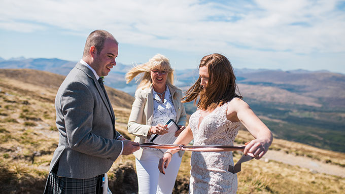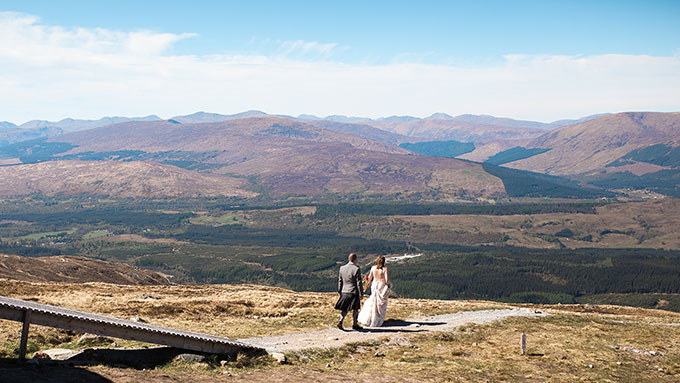 Both are crazy about mountain biking and met through their love of the sport. So why not marry at the starter’s box at the World Cup Mountain Downhill course near the top of the UK’s highest mountain Ben Nevis? And ride down afterwards… brilliant idea. Their endeavour was not for the faint hearted … riding this course, not marriage that is!