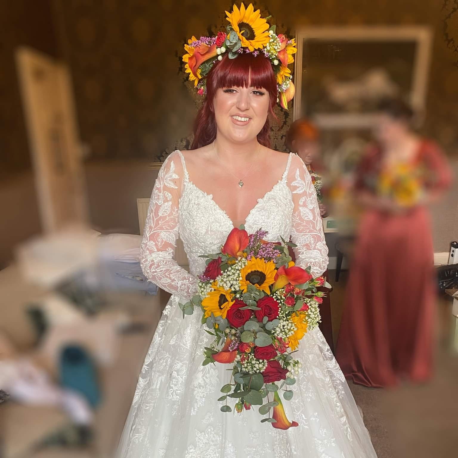 My alarm sounded on April the 8th, and it sunk in that I was getting married! We were ecstatic to open the curtains and watch the sun pouring in, as we had always dreamt of an outside ceremony and the rest of that weeks weather had been miserable. I will never forget the morning of my wedding. It was blissfully relaxed and peaceful. After breakfast, myself my two bridesmaids and my mum went out to the lawn to wrap some faux sunflowers around the bridal arch then headed back in to get ready. Greg says he was extremely excited when he drove past the arch and noticed the sunflowers, as that’s when it sunk in for him as well that our dream of getting married outside was becoming a reality.
