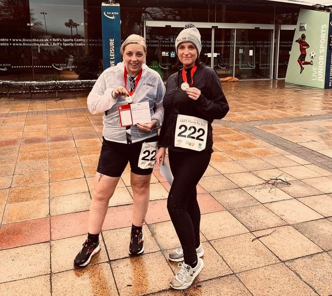 Sam (right) is pictured with best friend Amanda (left) after successfully completing the ‘Last Mince Pie 5k Run’ in Perth January 2024