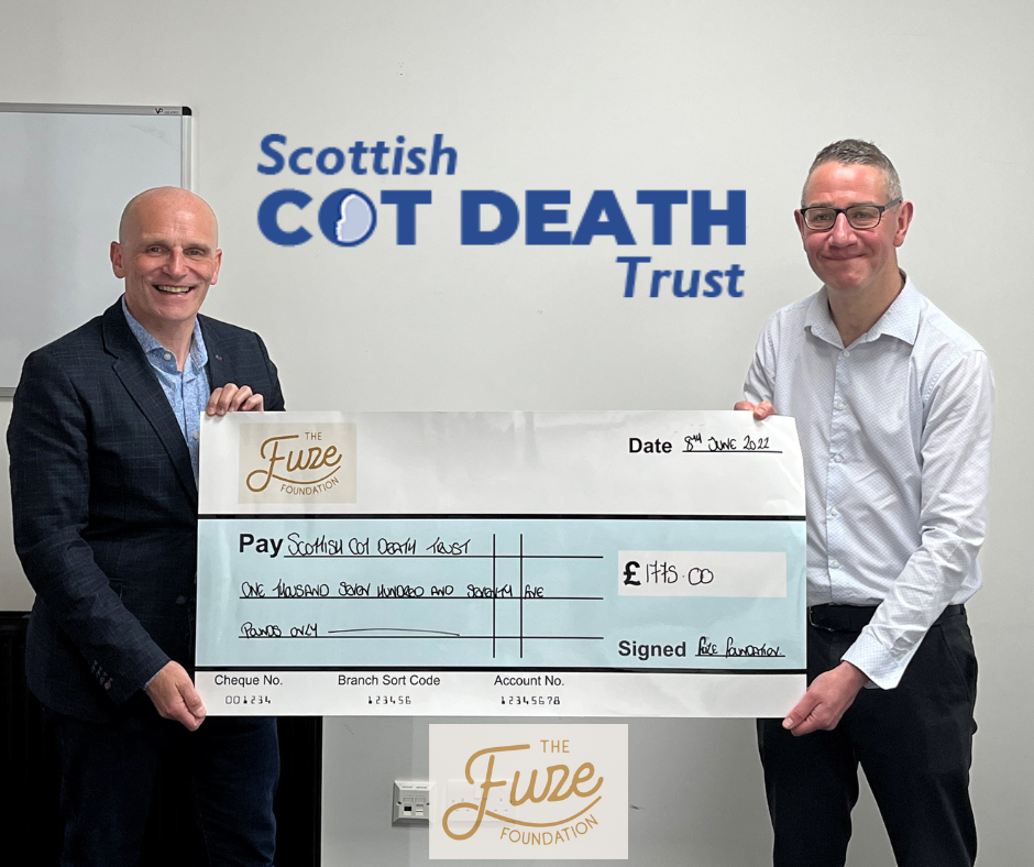 Scottish Cot Death Trust Fundraising & Communications Officer said; “A huge thanks to everyone at Fuze for their incredible efforts over the past 3 months. Our partnership is only in its infancy, but we’re delighted that the Scottish Cot Death Trust and Fuze are already reaping the benefits. We are so grateful to Fuze for raising a phenomenal total of £1,775. These funds could help pay for 32 of our home support visits from our dedicated bereavement professionals across Scotland. The awareness of the Scottish Cot Death Trust has also improved significantly. After we featured news of the Fuze partnership on our social media, our website had around 20 times more visits than the daily average! It’s a privilege that the charity will continue to receive donations received from every wedding ceremony that Fuze conduct.”