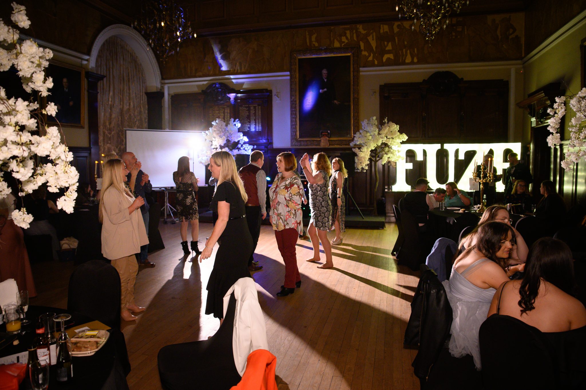 The grandeur of the Trades Hall is captured perfectly here by Daniel from Daniel Mainland Photography, who supplied his services for FREE on the night – This was in addition to the NO FEE venue hire from Elaine at the Trades Hall, along with the FREE of charge room dressing by LBS Event Design and Wedding Planners which really set the tone for the celebrations – I mean, check out that FUZE sign!