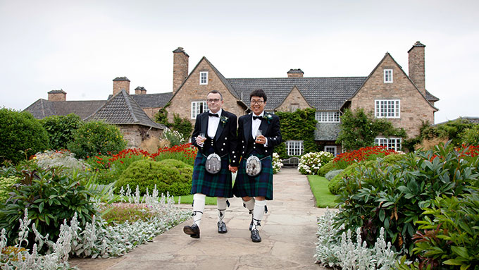 On arrival in Edinburgh we had a great introductory meeting with Mo, so she could find out a bit more about us. She also explained about humanist weddings, and elements that could be included in them and provided information on the Fuze Foundation. The meeting helped answer the questions we had. Mo even gave us her thoughts on the places that we had lined up to visit and told us that she was actually getting married herself that weekend! The trip went very well and we really covered a fairly wide area from Tayside, Fife, Kinross, Edinburgh and East Lothian. We decided on the Greywalls Hotel for the venue and settled on the date and also ordered our kilts. So we travelled back to London feeling pleased with ourselves about what we had achieved on a flying visit.