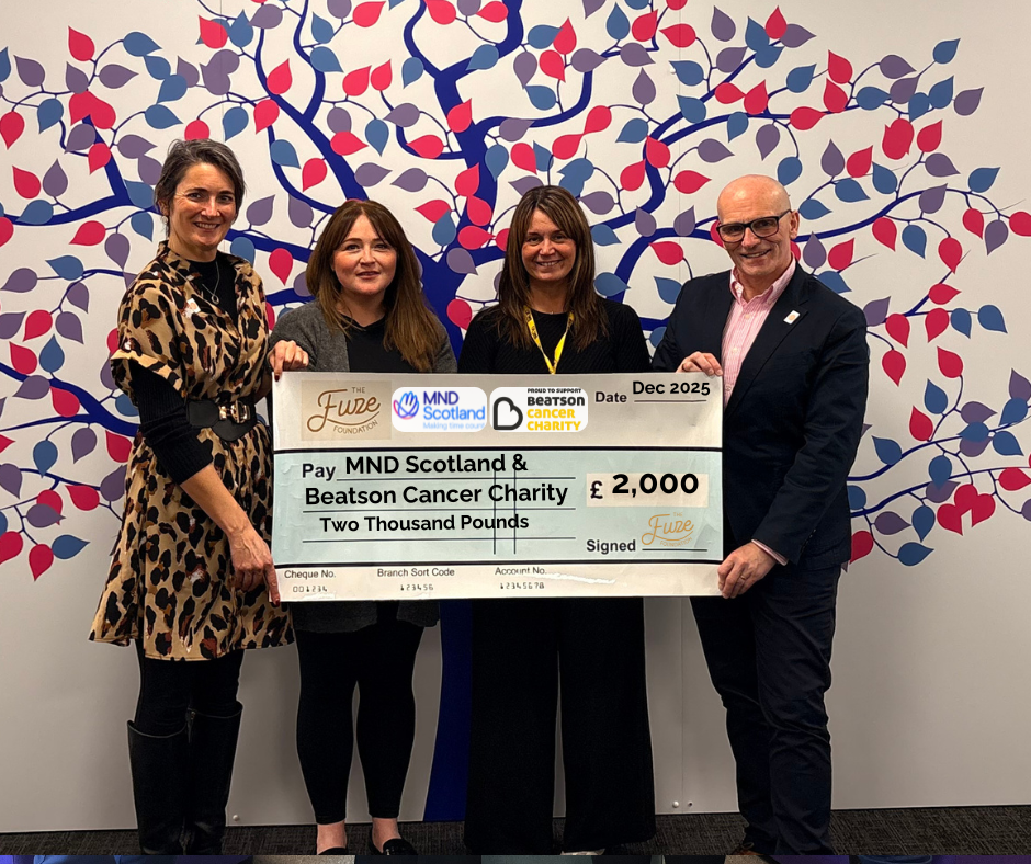 As we reach the end of 2025, we’re delighted to share another inspiring quarter of giving from The Fuze Foundation. Our Chair Morag Webster & George McLean visited MND Scotland’s offices to present our Quarter 3 donation cheques to our two partner charities: MND Scotland and Beatson Cancer Charity.
