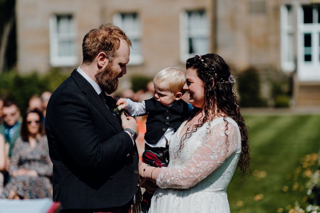Her bridesmaids were gorgeous in their light and dark blue dresses, the little flower girls were sitting contently watching cartoons on their ipads, all dressed and ready, then Caitlin and Alan’s little boy Alex came to visit his mum. He was SO cute with his blond hair, bright blue eyes and his tiny little kilt outfit matching his daddy’s. The styling for their wedding was incredible. There was nothing that Caitlin and Alan hadn’t thought of. They had a whole host of suppliers working with them on their day to make it as perfect as it was.