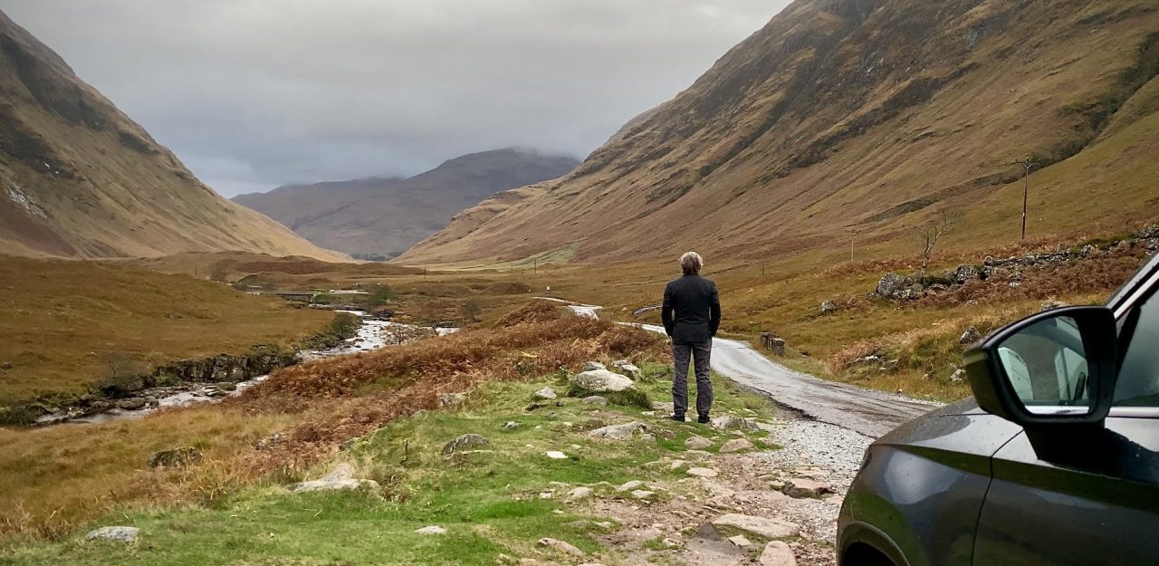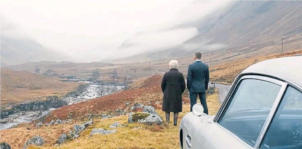 Roughly two miles down the Glen Etive Road there is a particular passing place that in the movie, James Bond and M stop on the way to the fictional SKYFALL estate to take a rest and to take in the epic view down into Glen Etive. Since that movie came out, fans of the movie have literally travelled from all over the world to find this location and recreate that scene. For those who are interested, here are the GPS coordinates: 56°37′10.31″N 04°55′51.23″W.