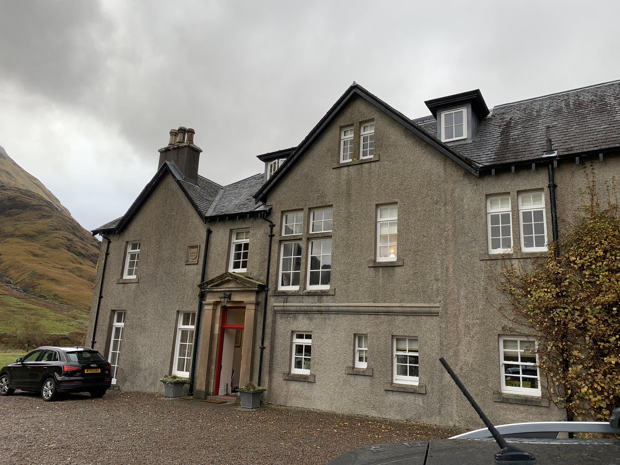 I knew Glencoe reasonably well having spent so much time there in pursuit of my Munro bagging adventures, and I knew that in the year 2012, part of the James Bond movie SKYFALL had been filmed there, in particular one scene that was filmed about halfway down the Glen Etive Road, which was only about 6 miles further back from the Dalness estate. The actual house itself is not too dissimilar from the house depicted in the SKYFALL movie although clearly the one in the movie was designed deliberately to look neglected and foreboding. The movie version of the house wasn’t even constructed in Scotland, but was built as a front, back and sides facade in Hankley Common, Surrey where all the exterior action shots took place.