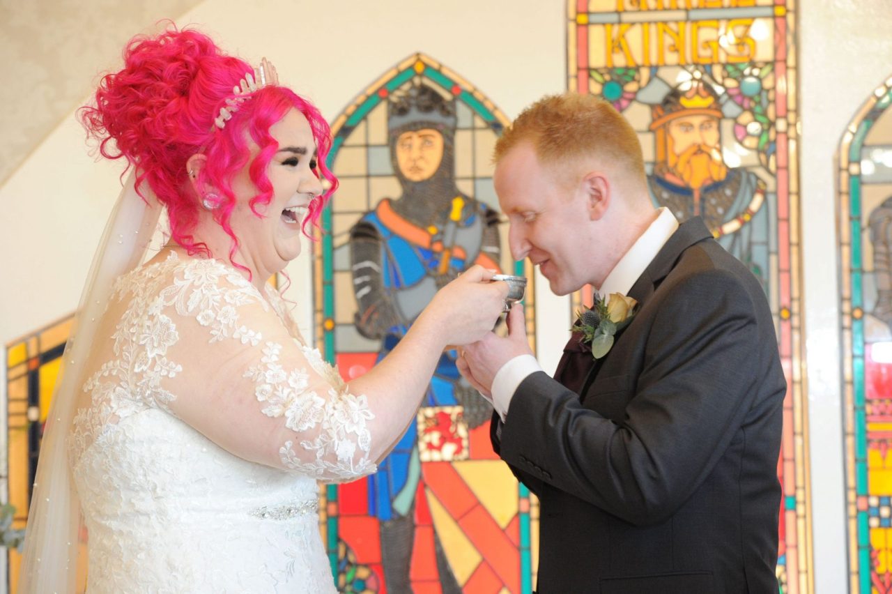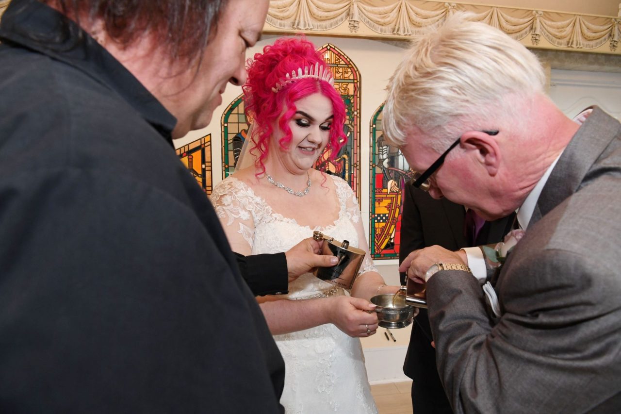 The happy couple’s dad’s then helped pour their drink of choice into the Quaich