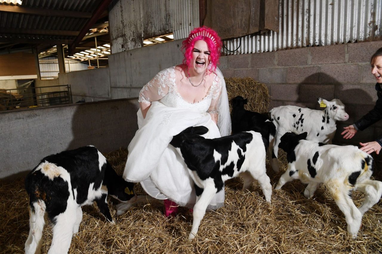 Fiona and Christopher took the trend of ‘animals at weddings’ to a whole new level – photograph by Stuart Vance