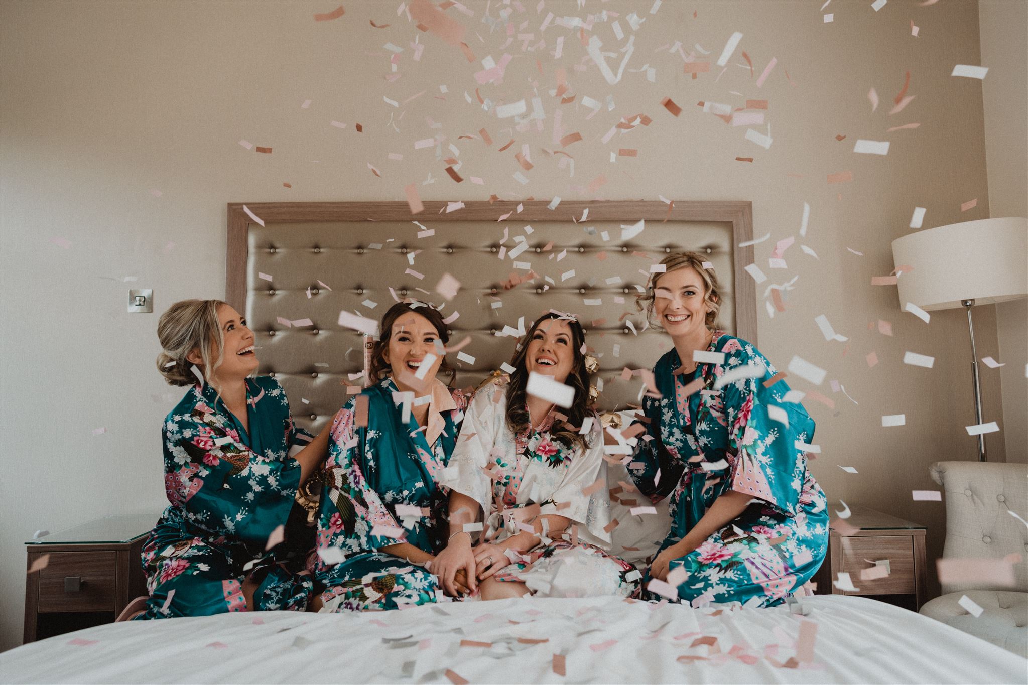 Julie and her bridesmaids enjoy some morning bridal prep fun