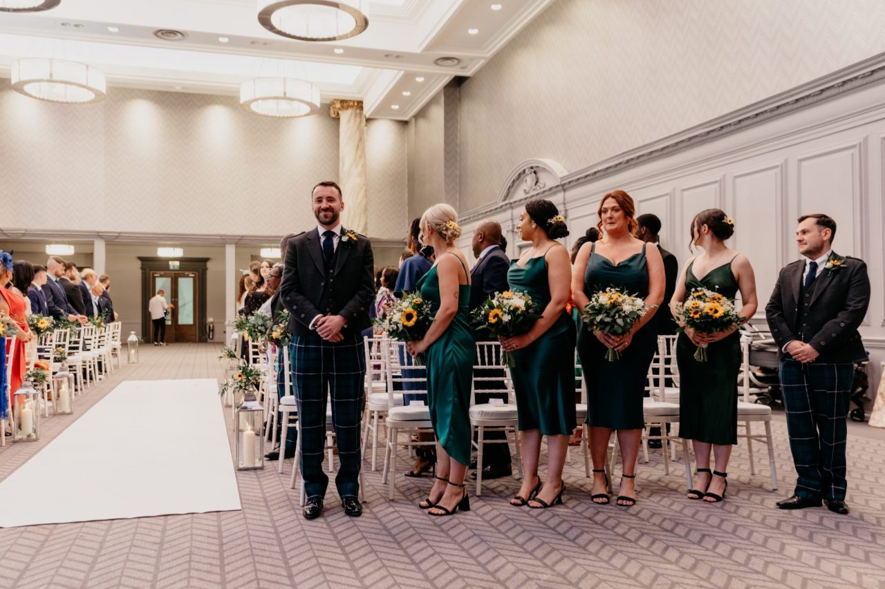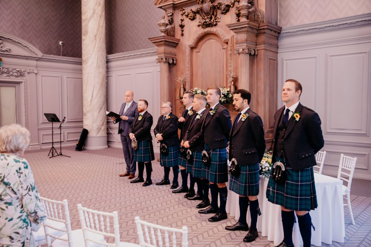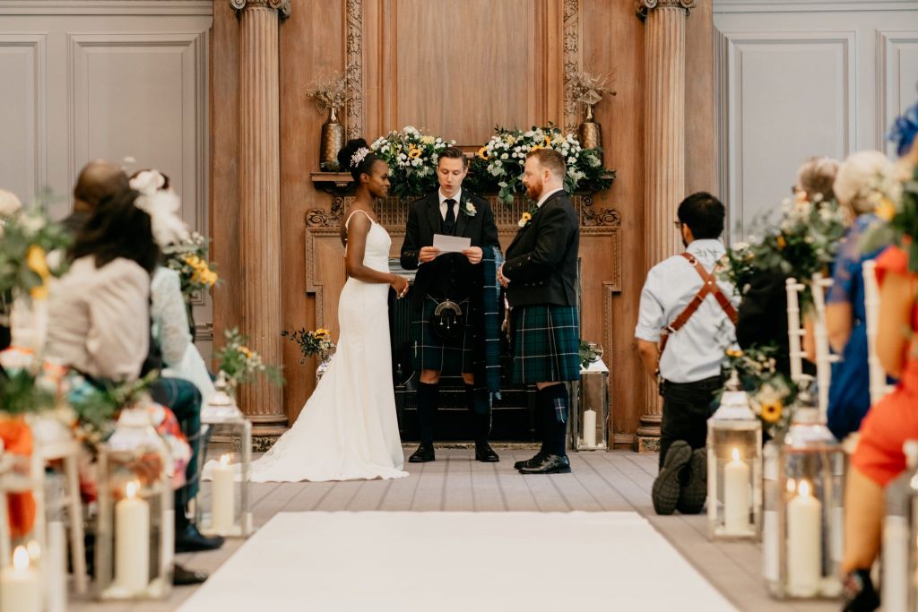 Their ceremony took place in The Grand Room of Glasgow setting and simply blew everyone away with its high ceilings, streaming natural light and centerpiece fireplace.