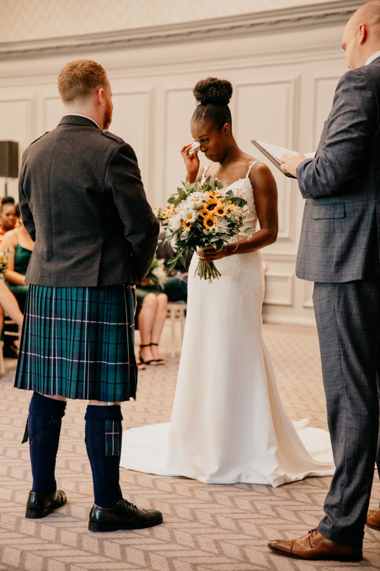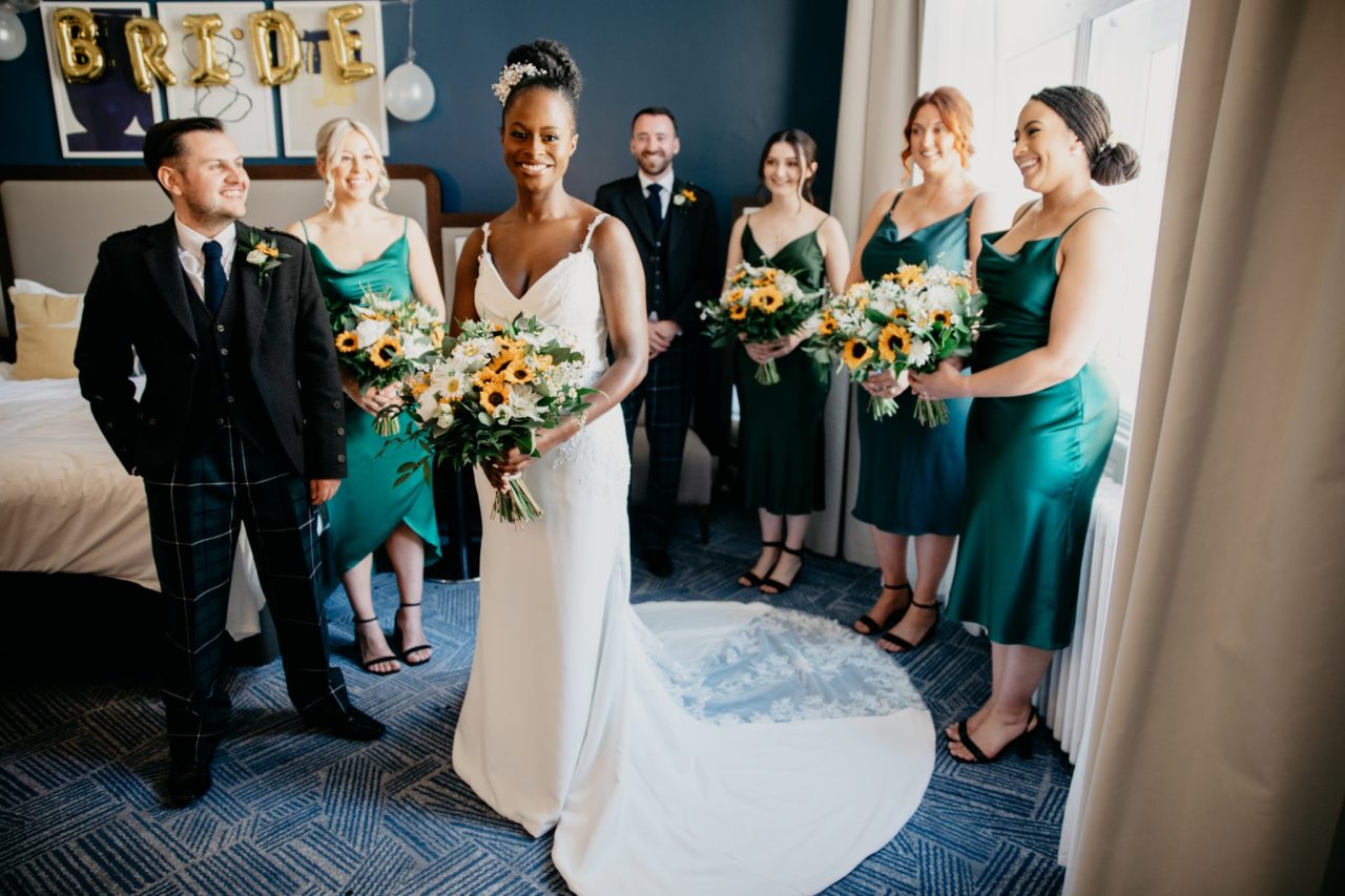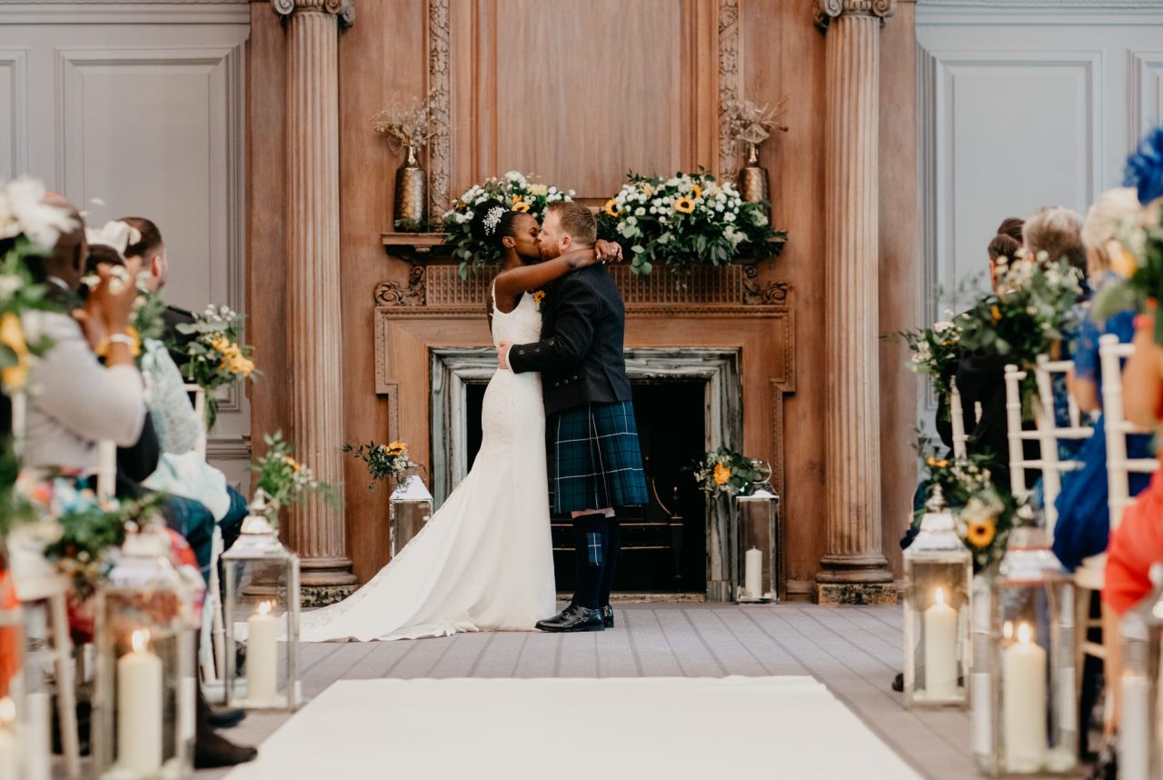 Their ceremony took place in The Grand Room of Glasgow setting and simply blew everyone away with its high ceilings, streaming natural light and centerpiece fireplace.