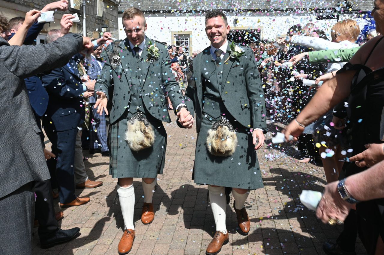 Douglas and Ross’ confetti shot smiles say it all following their humanist wedding ceremony – captured perfectly by Picture You Photography