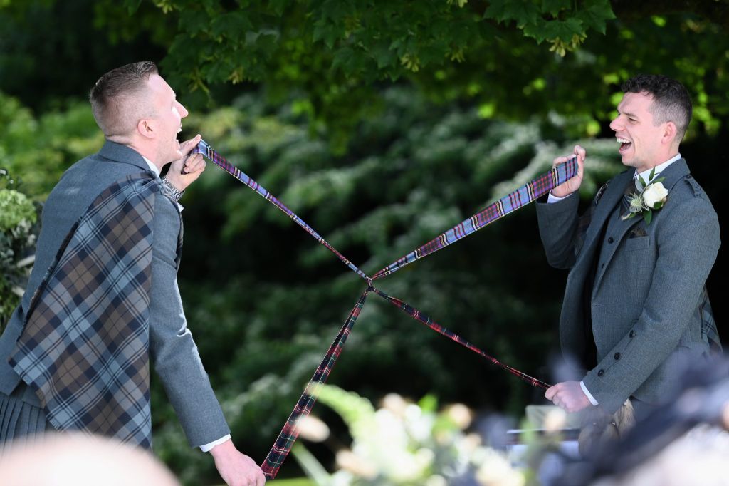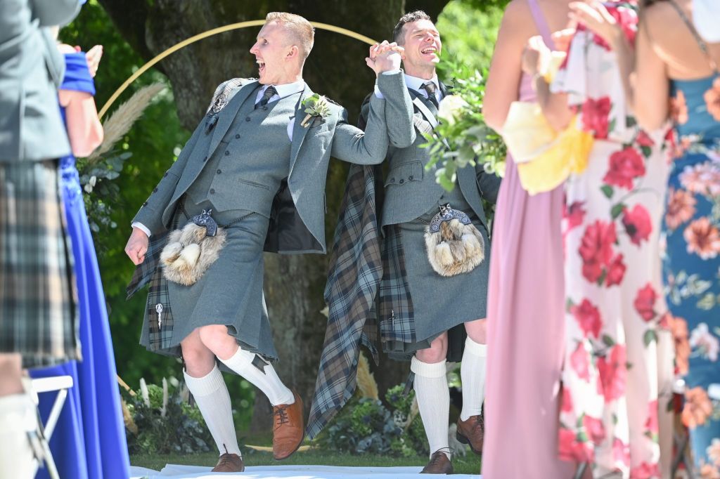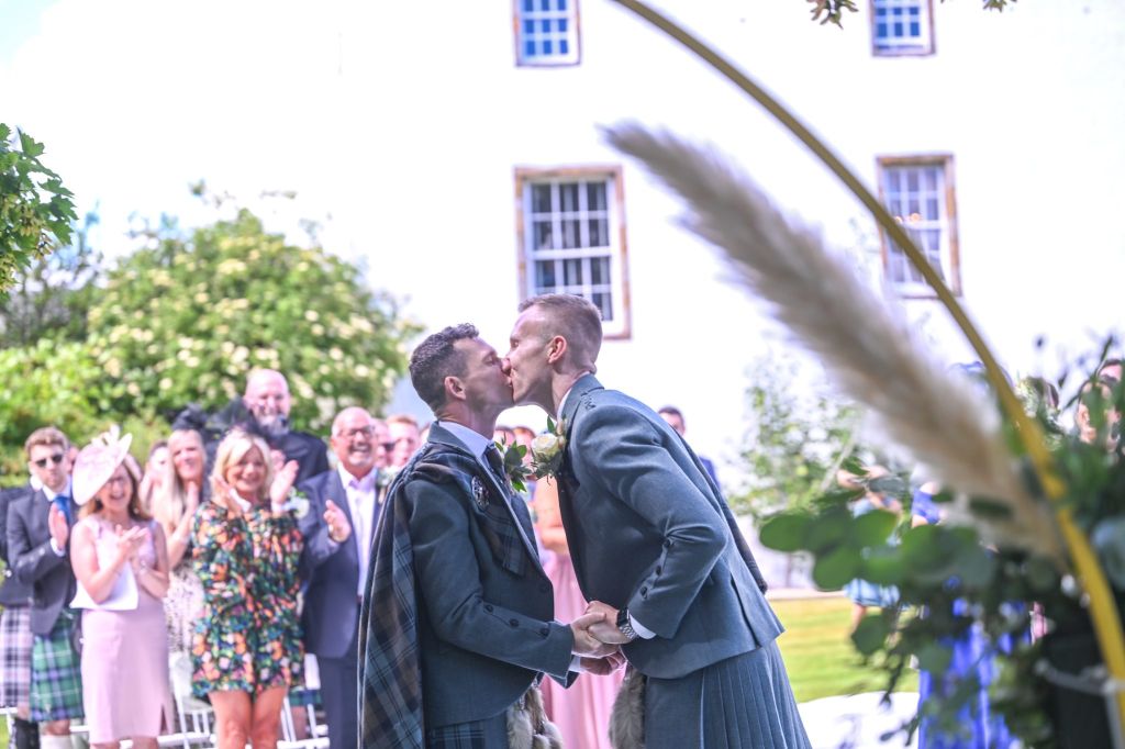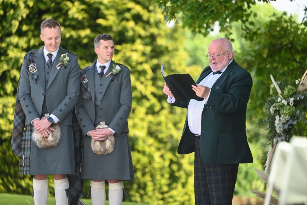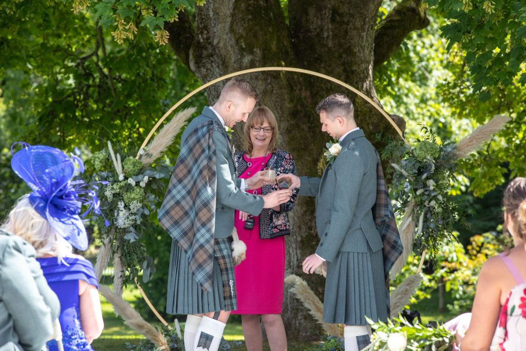 Wedding planning began and the original date was to be during the short window of opportunity that they were both aged 30 but a pandemic changed all their plans – here we are today – Douglas is still 30, but unfortunately Ross has moved on to the ripe old age of 31. It is great to see so many of you have made the journey to be here for them both today on their wedding day – even if it is 357 days later than planned.