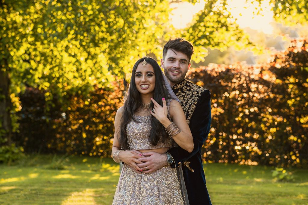 Bride’s and groom’s Pakistani evening outfits Monga’s