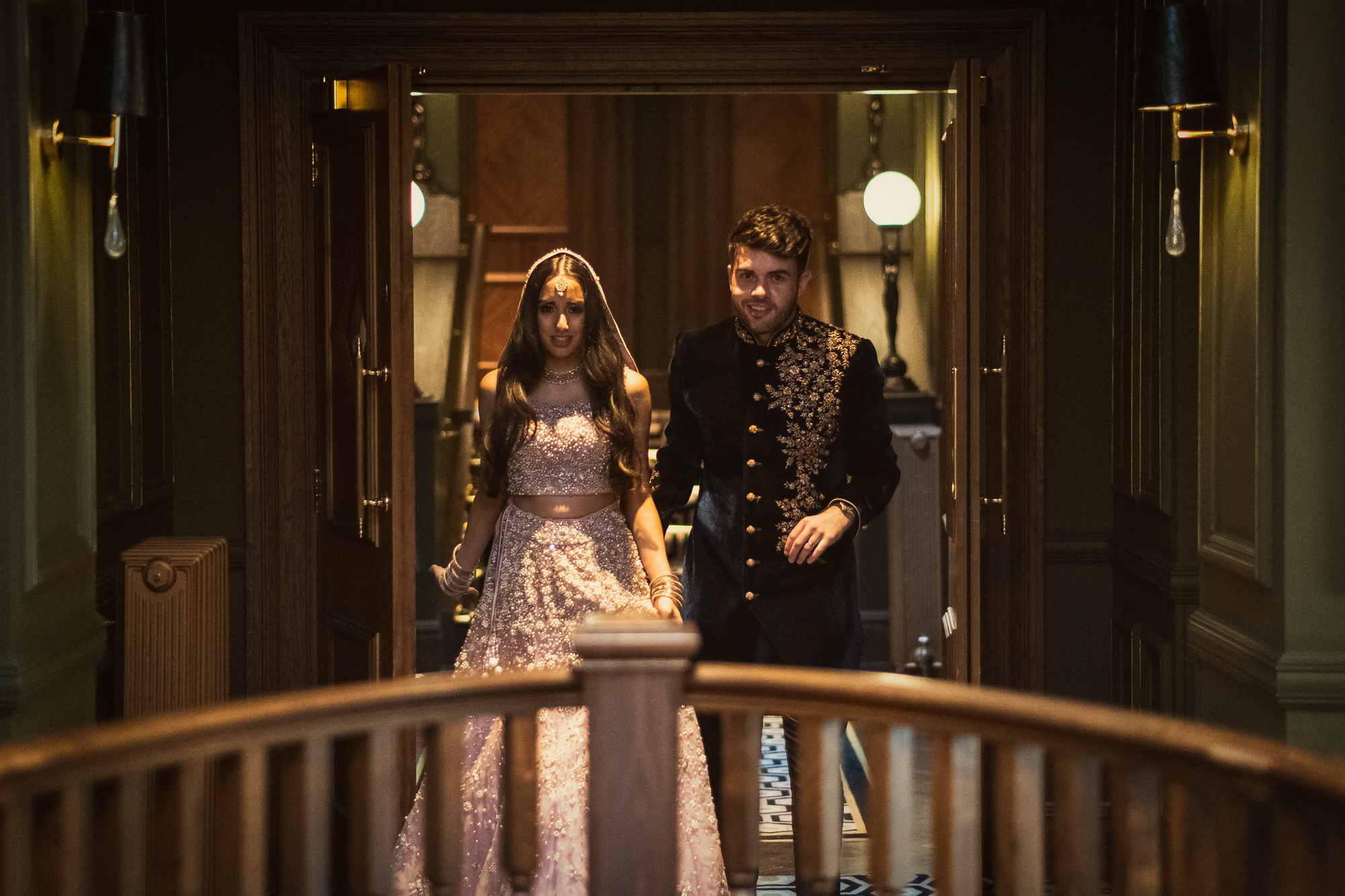 Bride’s and groom’s Pakistani evening outfits Monga’s