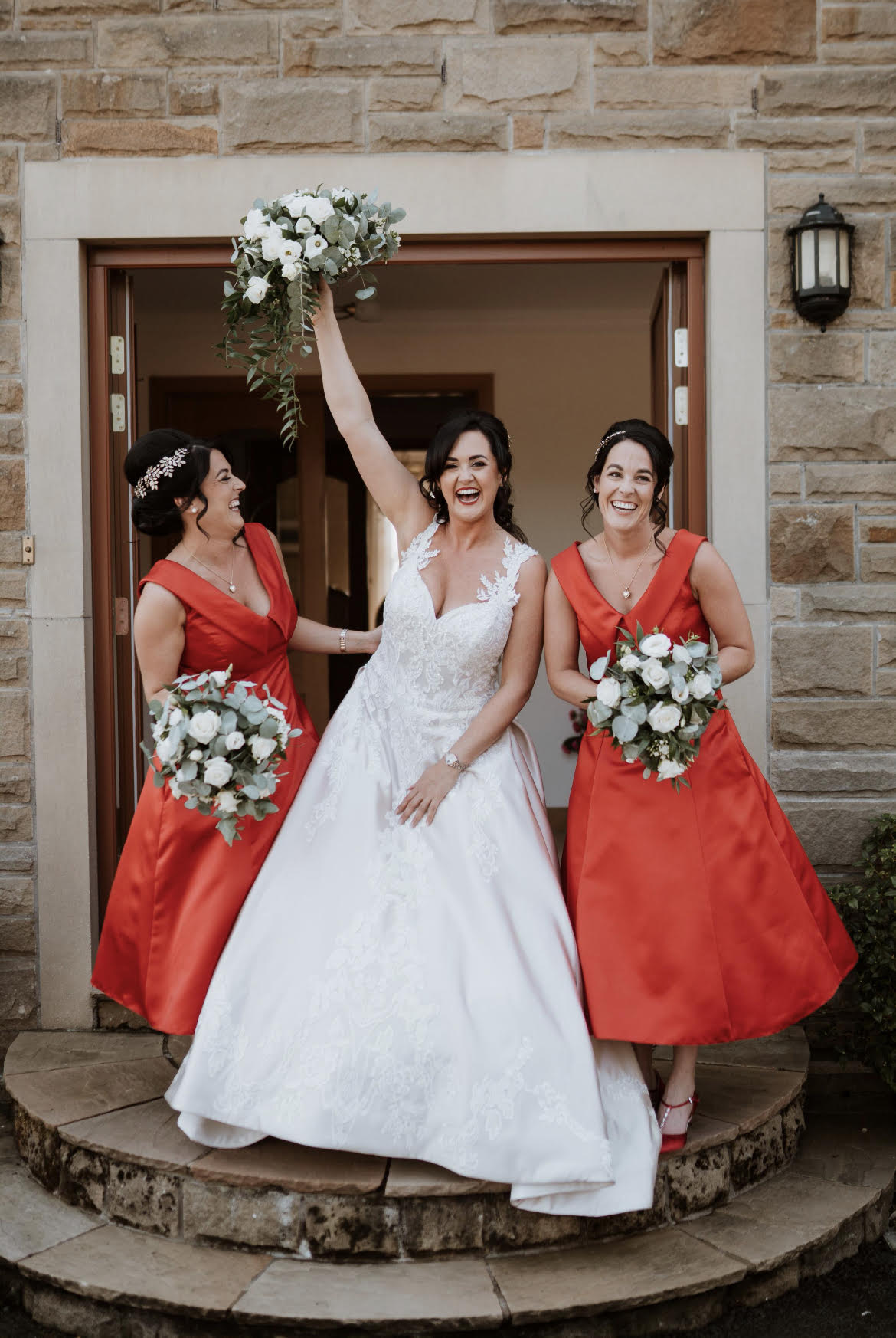 Stacey’s bridesmaids are twins and also sisters to our bride and they certainly made a memorable entrance and when they were halfway up the aisle, the music tempo shifted to something more upbeat and they danced the rest of their way down the aisle much to the delight of the guests! This was an additional surprise for our unsuspecting groom, Brian.