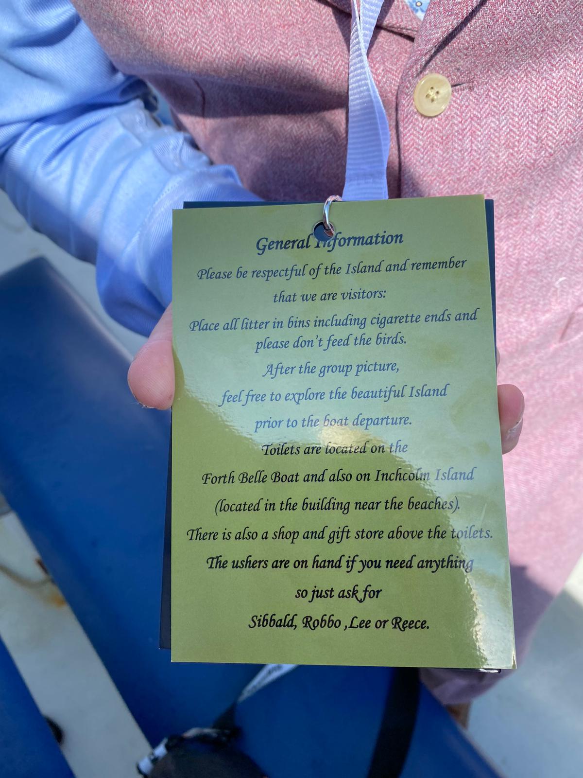 The next leg of their adventure on the Forth Belle boat as it made its 30 min journey under the 3 bridges and towards Inchcolm Island. There was very much a party vibe and atmosphere on the boat as it sailed along the Firth of Forth with the 120 guests, their videographer, photographer and caterer and bar staff.