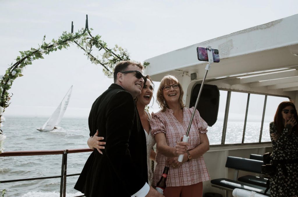 Once Stacey and her dad Stewart arrived their short but beautiful and emotional ceremony got underway. Stacey and Brian exchanged their vows as they held each other’s hands – the hands of best friends now about to become husband and wife. They exchanged their wedding rings traditionally by repeating their legal vows and finally signing their marriage schedule with their two witnesses. They had patiently waited for this day for two long years and were finally married to a lot of cheers ringing out from their wonderful guests. There was just time for a quick group shot, and some official photographs before their guests were onboarding the boat for their return journey.
