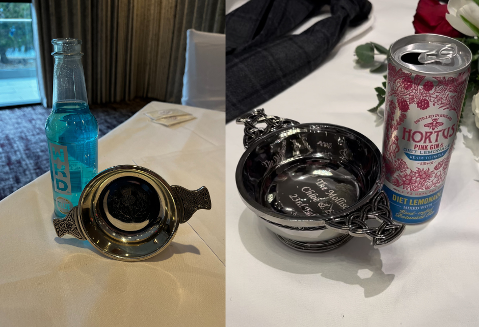 “As we raise the Quaich together, surrounded by the people we hold dear, we’ll toast to the journey ahead – filled with love, laughter, and cherished moments. Each sip from the Quaich will be a reminder of the love and support that surrounds us as we embark on this new chapter of our lives together.