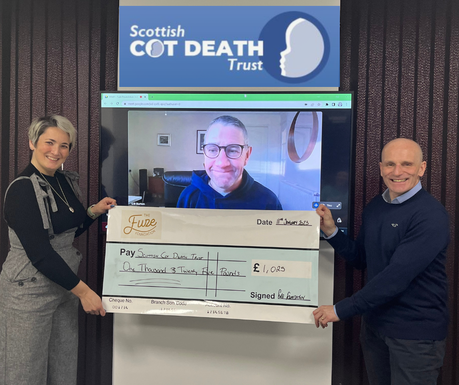“A huge thanks to The Fuze Foundation for yet another successful period of fundraising. To think the organisation have raised a four-figure sum for the Scottish Cot Death Trust in all 3 quarters of our partnership is just phenomenal! We’re so grateful for each and every donation we receive from Fuze’s wedding fees, as part of their commitment to their partner charities. If that wasn’t enough, Gina’s Vietnam – Cambodia Cycle in November was such an amazing and unique way to support the Trust. Her photos and stories from the trip were so inspiring. As always, The Fuze Foundation have pulled out all the stops in making our charity feel a part of their journey. Even going as far as our virtual cheque presentation today! Thank you for helping us continue our vital work as Scotland’s only charity dedicated to sudden unexpected death in infancy (SUDI).”