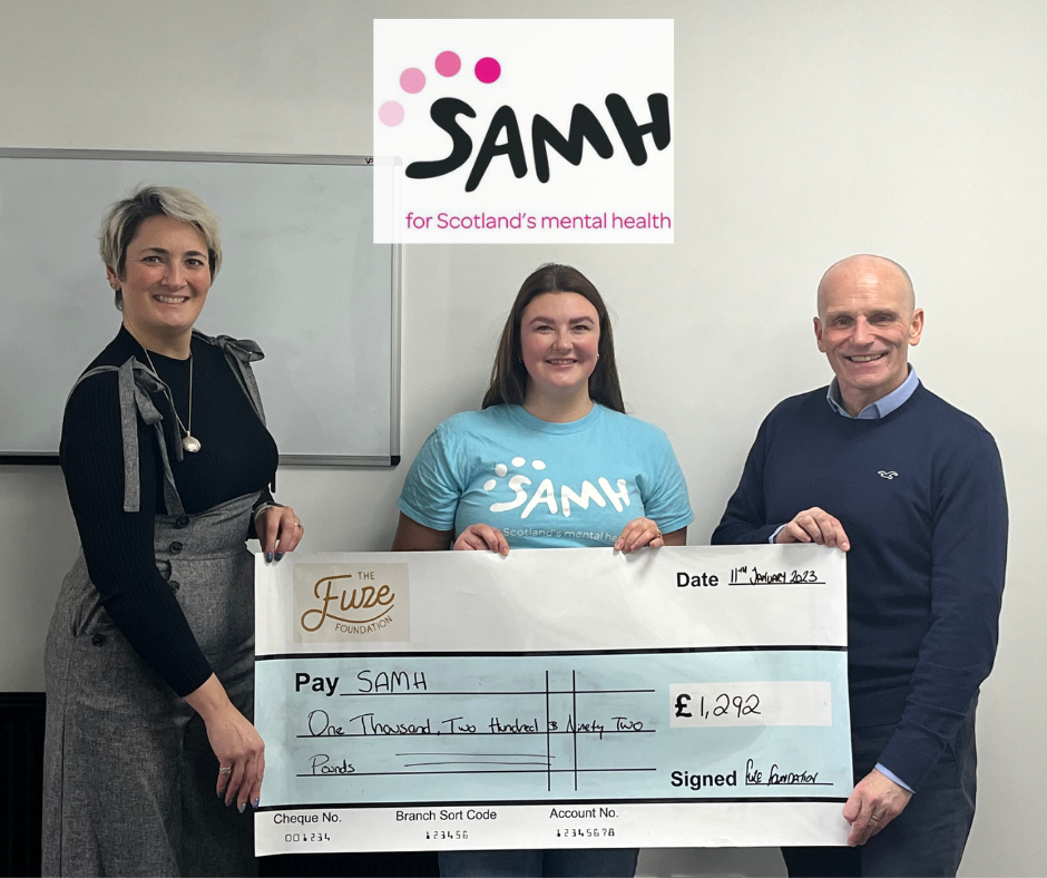 “We are so incredibly grateful to The Fuze Foundation for their continued support of SAMH through their quarter 3 giveback, raising a further £1292. £592 of this was raised by Gina through her Vietnam to Cambodia cycle for Scotland’s mental health. Thank you once again to the Fuze team for their wonderful support and enthusiasm in raising awareness and funds for SAMH.”